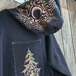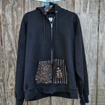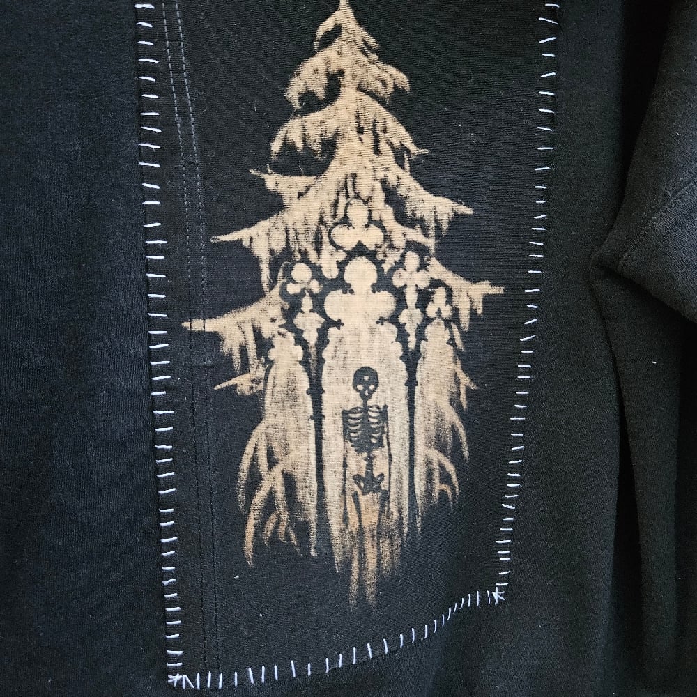 hand sewn custom bleacb patches on a cotton hanes hoodie